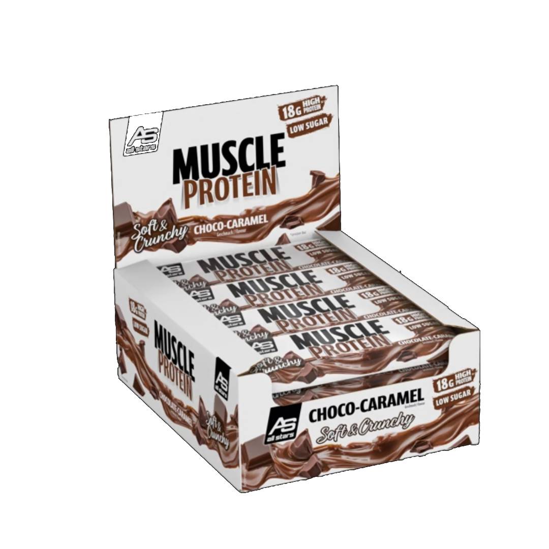 La nuova barretta proteica di ALL STARS è morbida e croccante allo stesso tempo. Ogni porzione (65 g) contiene poco zucchero, ma con 18 g quasi il 30% di proteine. La miscela proteica è composta da proteine del latte di alta qualità e concentrato di proteine del siero di latte. L'effetto croccante è ottenuto da deliziosi croccantini e le barrette sono ricoperte da una delicata copertura di cioccolato al latte.