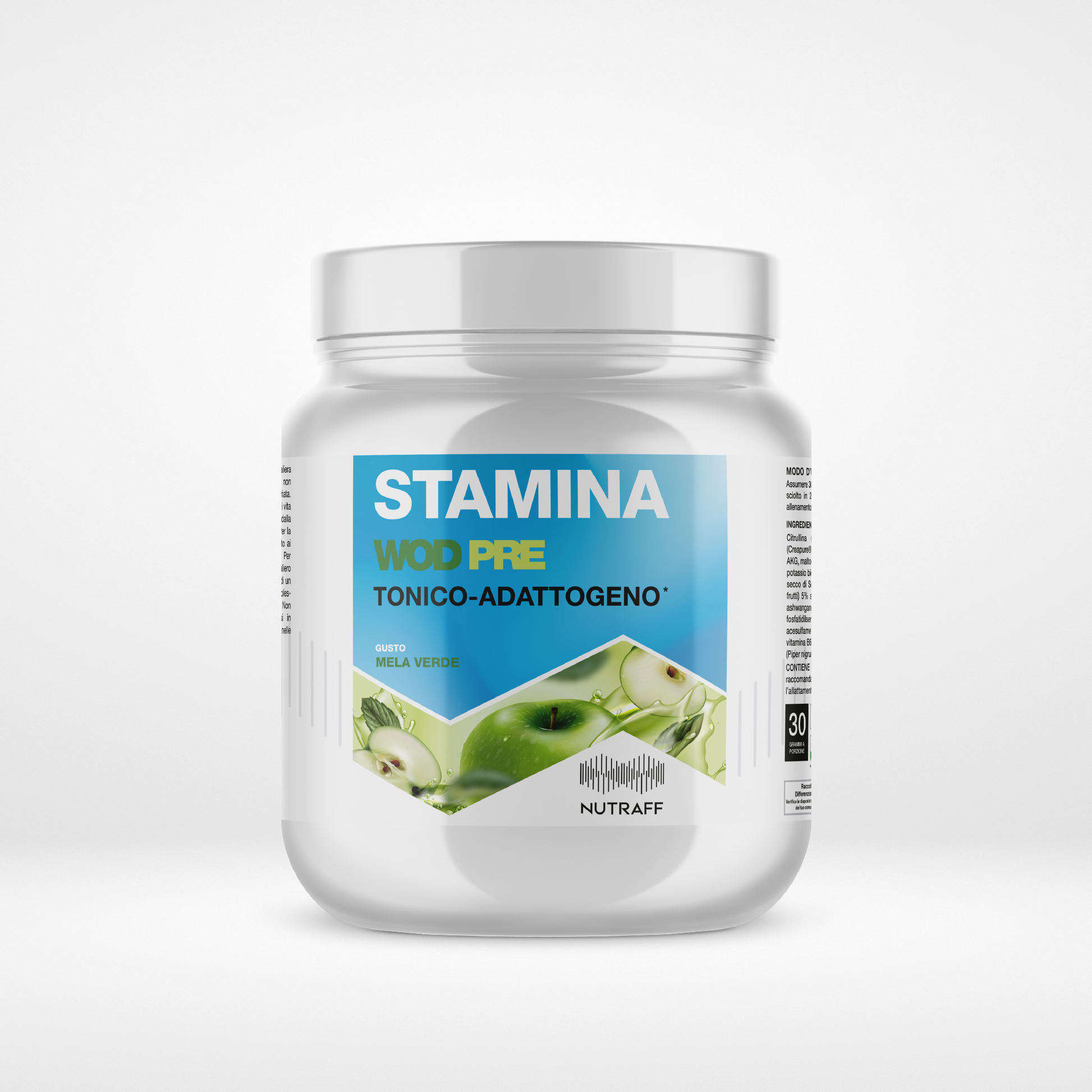 Citrullina (KYOWA QUALITY®), creatina monoidrato (Creapure®), trigliceridi a media catena (MCT), Arginina AKG, maltodestrine, beta alanina, taurina, cloruro di sodio, potassio bicarbonato, aromi, ossido di magnesio, estratto secco di Schizandra (Schisandra chinensis (Turcz.) Baill., frutti) 5% schizandrina, calcio fosfato, estratto secco di ashwanganda (Withania somnifera (L.) Dunal, radici), fosfatidilserina, teanina, caffeina, Edulcoranti: sucralosio, acesulfame K; niacina (nicotinamide), ossido di zinco, vitamina B6 (piridossina cloridrato), piperina da pepe nero (Piper nigrum L., frutti), vitamina B12 (cianocobalamina).